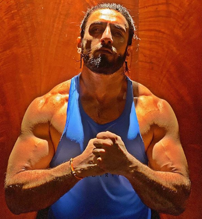 Bollywood superstar Ranveer Singh who is currently quarantining in wife, actress Deepika Padukone’s residence in Mumbai due to the sudden outbreak, is killing it on Instagram with his huge muscles in a blue athleisure.