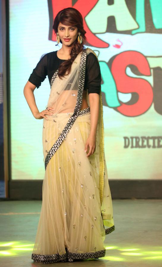 Sruthi Hassan at Ramaiya Vastavaiya Audio Launch, Sruthi Hassan at Ramaiya Vastavaiya Music Launch,Sruthi Hassan Saree Stills at Ramaiya Vastavaiya Music Launch,Sruthi Hassan navel show at ramaiya vastavaiya audio,Sruthi Hassan hot at ramaiya vastavaiya music launch,