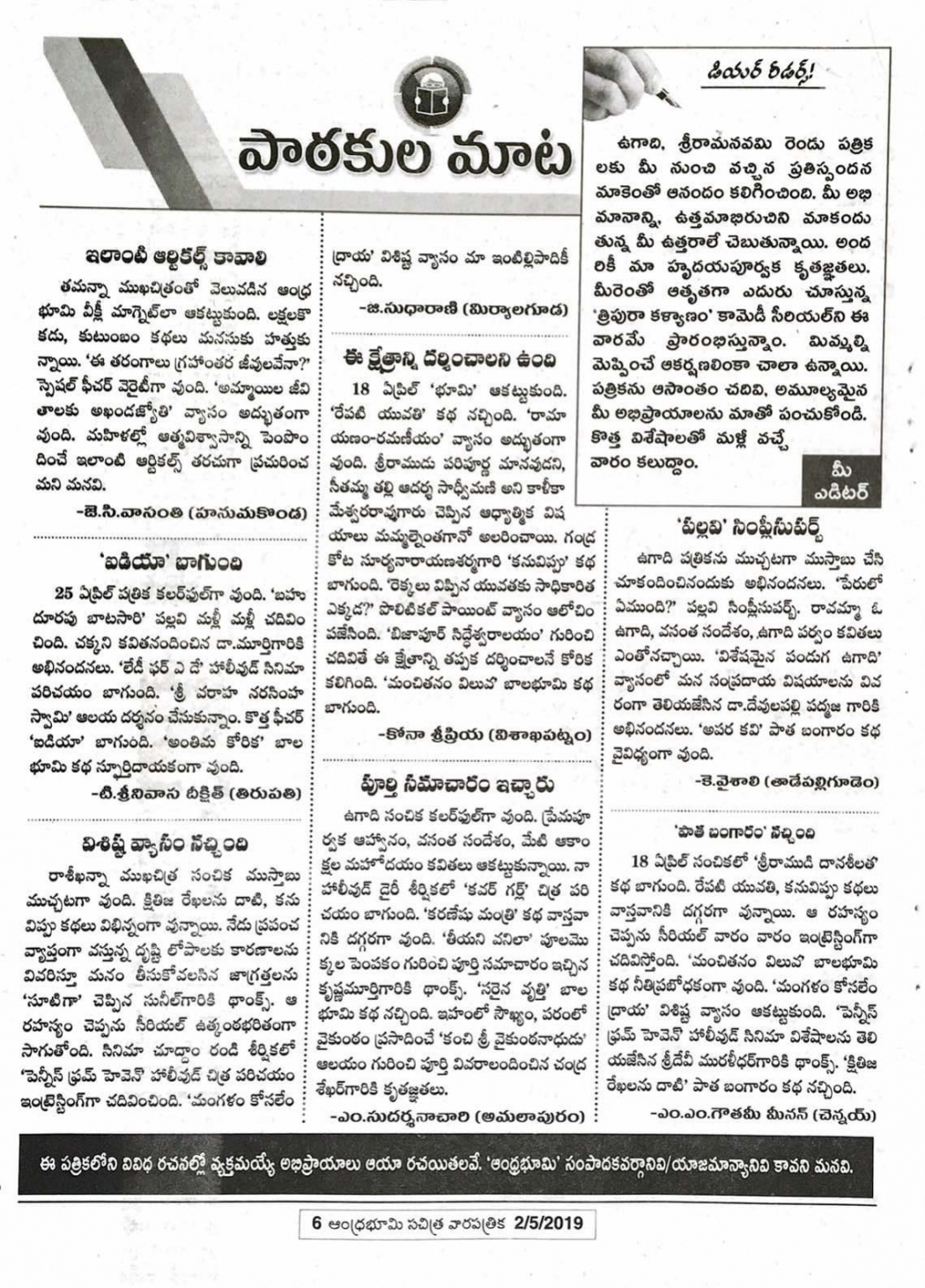 Home / PHOTOS / FREE ONLINE MAGAZINES / Andhra Bhoomi Weekly 2nd May 2019