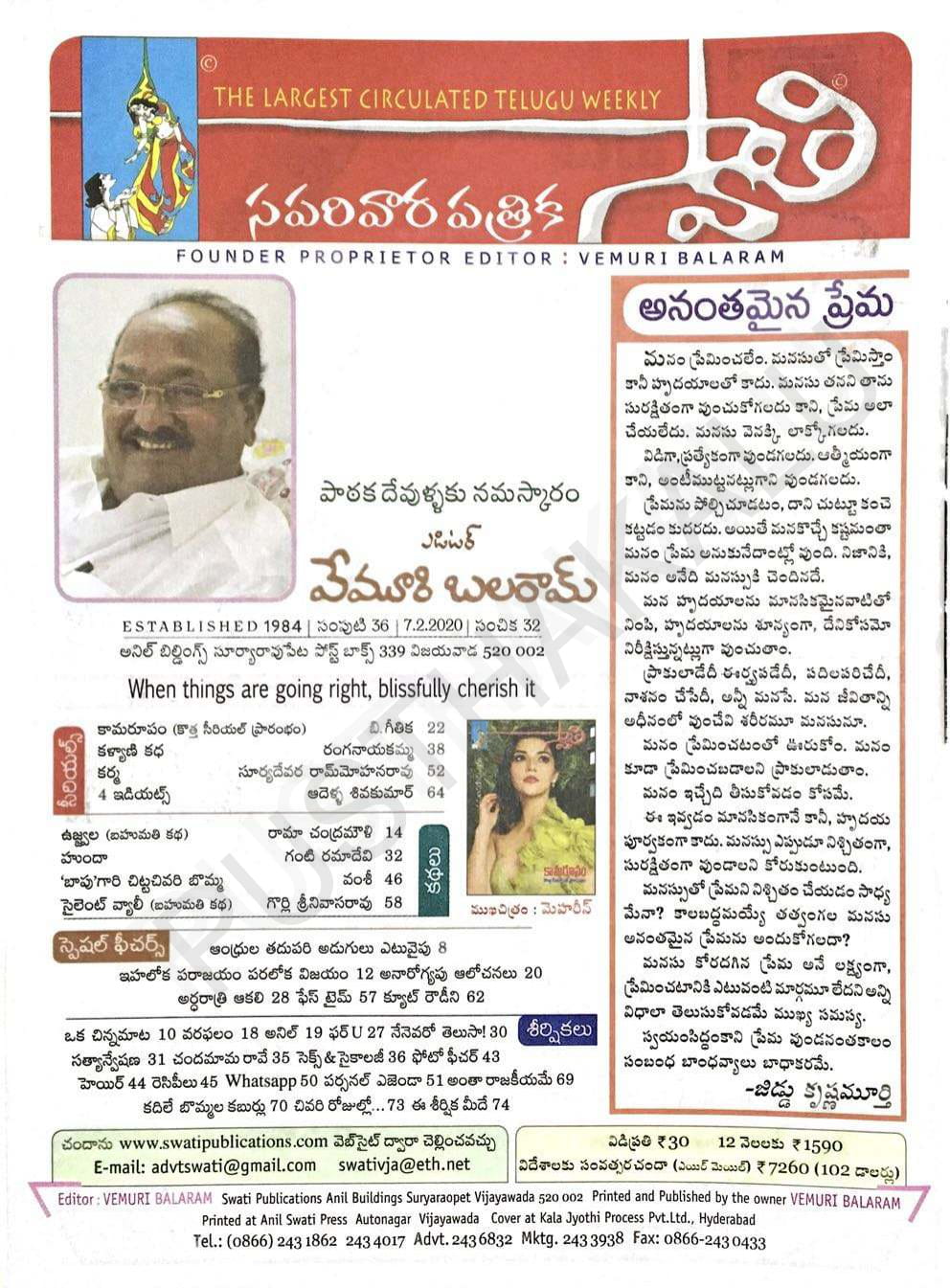 Swathi Telugu Weekly Magazine Online