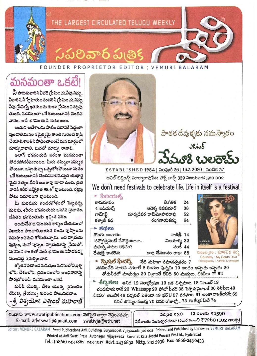 Swathi Telugu Weekly Magazine Online