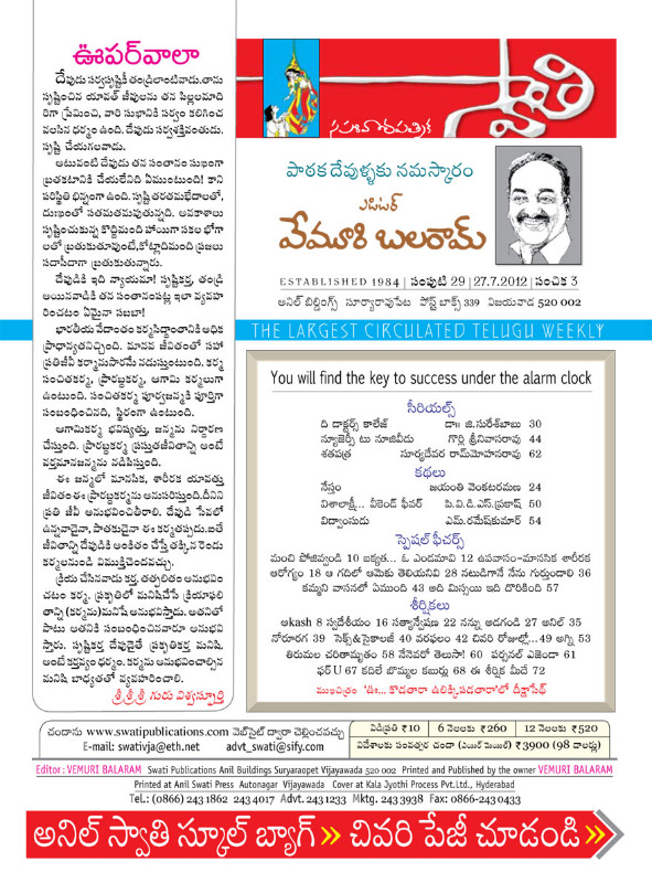 Swathi Telugu Weekly Magazine Online