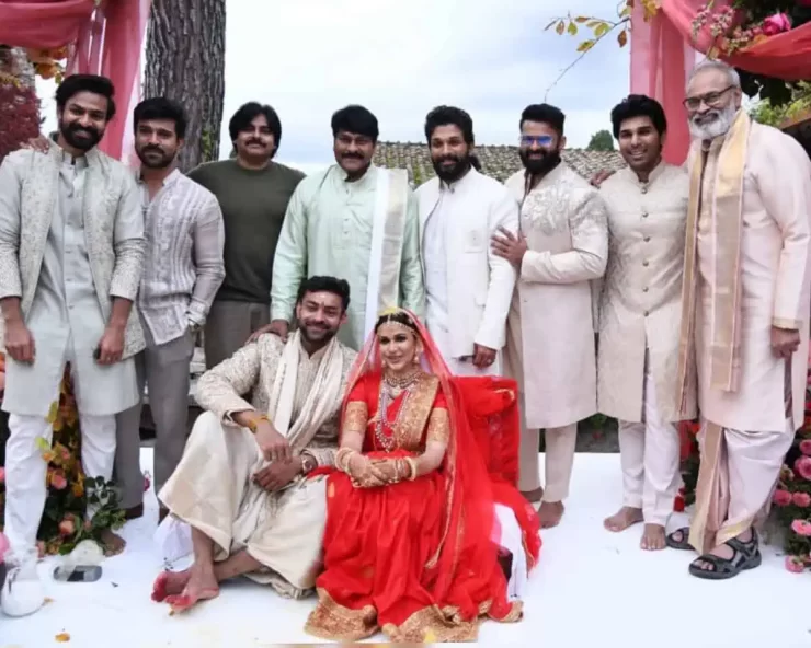 ఒకరకంగా చెప్పాలంటే ఇది మెగా మల్టీస్టారర్ ఫోటోగా చెప్పొచ్చు. చిరంజీవి, పవన్ కళ్యాణ్, రామ్ చరణ్, అల్లు అర్జున్, సాయి ధరమ్ తేజ్, వైష్ణవ్ తేజ్, అల్లు శిరీష్, నాగబాబులతో కలిసి కొత్త జంట ముసిముసి నవ్వులతో ఫోజులివ్వడం చూడముచ్చటగా ఉంది. సగం టాలీవుడ్ ఇక్కడే ఉందంటూ మెగాభిమానులు కామెంట్లు పెడుతున్నారు. ఊరికే నోటి లెక్కగా మార్కెట్ వేల్యూ చూసుకున్నా ఫోటోలో ఉన్న వాళ్లందరివీ కలిపి నిర్మాణంలో ఉన్న సినిమాల విలువ రెండు వేల కోట్లకు చేరుతుంది. విశ్వంభర, గేమ్ ఛేంజర్, ఆర్సి 16, ఓజి, ఉస్తాద్ భగత్ సింగ్, హరిహర వీరమల్లు, పుష్ప 2 ది రూల్ కలుపుకున్న చాలు ఇంకా ఎక్కువే కావొచ్చు