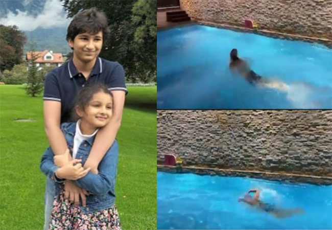 సూపర్ స్టార్ మహేష్ బాబు శ్రీమతి నమ్రత వ్యాపారలు ఇతర పనులతో ఎంత బిజీగా ఉన్నా కూడా కుటుంబ వ్యవహారాలు పూర్తిగా ఆమె చూసుకుంటారు. ఒక ఉత్తమ గృహిణిగా నమ్రత ఎంతో మంది ప్రముఖుల ప్రశంసలు దక్కించుకుంది. పిల్లలు మరియు భర్త విషయంలో ఆమె చూపించే శ్రద్ద గురించి ప్రత్యేకంగా చెప్పనక్కర్లేదు. రెగ్యులర్ గా తన పిల్లలు మరియు భర్తకు సంబంధించిన వీడియోలు మరియు ఫొటోలను రెగ్యులర్ గా షేర్ చేస్తూ ఉంటుంది. తాజాగా ఈమె ఇన్ స్టాగ్రామ్ లో తన ఇద్దరు పిల్లలు స్విమ్మింగ్ చేస్తున్న వీడియోను షేర్ చేసింది.