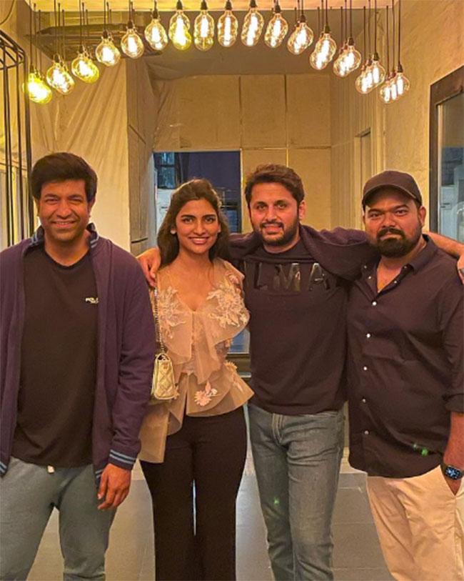 టాలీవుడ్ యువ హీరో నితిన్ తన ప్రియసఖి షాలిని ని వివాహం చేసుకొని ఓ ఇంటివాడైన సంగతి తెలిసిందే. లాక్ డౌన్ టైంలో జులై 26న వీరి వివాహం కుటుంబ సభ్యులు.. కొద్దిమంది సన్నిహితులు అతిథుల సమక్షంలో జరిగింది. ప్రస్తుతం సినిమా షూటింగ్స్ తో బిజీగా ఉన్న నితిన్ తన సతీమణి పుట్టినరోజు వేడుకను ఘనంగా సెలబ్రేట్ చేశాడు. పెళ్లి తర్వాత వచ్చిన భార్యామణి బర్త్ డేని క్లోజ్ ఫ్రెండ్స్ కలిసి జరిపినట్లు తెలుస్తోంది. ఈ పార్టీకి హాస్యనటుడు వెన్నెల కిషోర్ – ‘భీష్మ’ దర్శకుడు వంశీ కుడుముల కూడా హాజరయ్యారు. వెన్నెల కిషోర్ దీనికి సంబంధించిన ఓ ఫోటోని సోషల్ మీడియా మధ్యమాలలో పోస్ట్ చేస్తూ షాలిని కి బర్త్ డే విషెస్ తెలియజేసాడు. ఇందులో నితిన్ – షాలిని దంపతులతో పాటు వెన్నెల కిషోర్ – వంశీ కుడుముల కనిపిస్తున్నారు.
