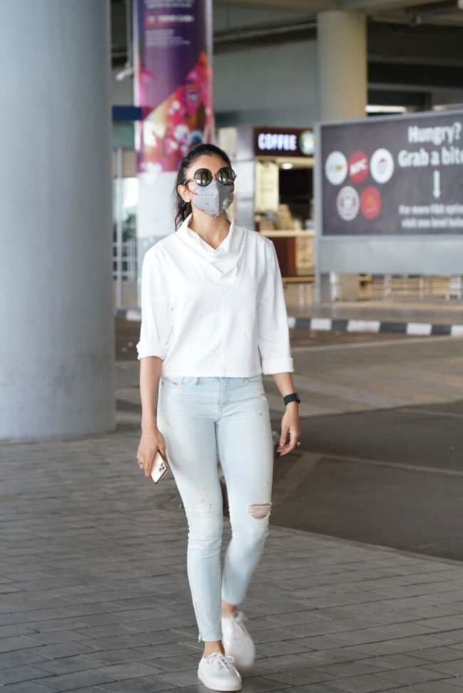 ఇక ఇటీవల ఎయిర్ లైన్స్ వాళ్లు విమానాల సంఖ్యను పెంచారు. అన్ లాక్ 4.0 లో మరింత వెసులుబాటు ఉండనుంది. ఆ క్రమంలోనే ముంబై టు హైదరాబాద్.. హైదరాబాద్ టు ముంబై .. చెన్నయ్ ప్రయాణించేందుకు రకుల్ డేర్ చేస్తోంది. ఇదిగో ఇలా శంషాబాద్ అంతర్జాతీయ విమానాశ్రయంలో దిగగానే కెమెరా కంటికి చిక్కిందిలా. మాస్క్ పెట్టుకున్నా వైట్ అండ్ బ్లూ డెనిమ్ లో ఎంతో స్టైలిష్ గా కనిపించింది. వైట్ టాప్ బ్లూ షేడ్ డెనిమ్స్ కి కాంబినేషన్ గా ఆ బ్లాక్ గాగుల్ స్టైల్ అదిరిపోయింది కదూ?