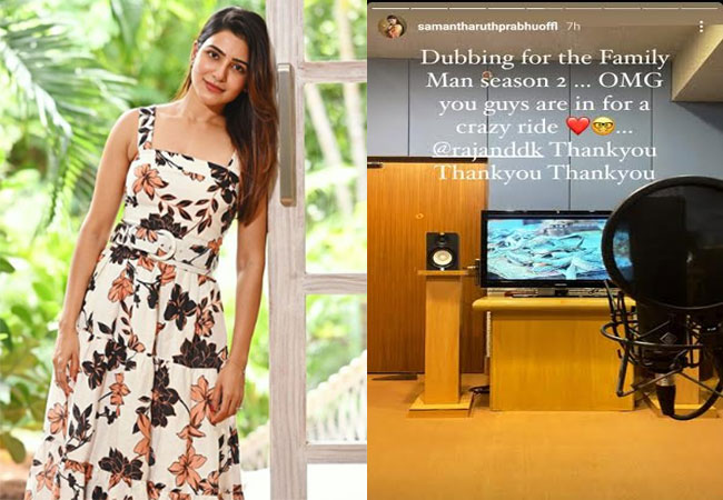 కాగా సమంత ఈ సందర్భంగా డబ్బింగ్ స్టూడియోలో ఉన్న ఫొటోను ఇన్స్టాగ్రామ్ స్టోరీలో షేర్ చేసింది. ఈ ఫొటోలో సమంత కనపడకుండా మైక్రోఫోన్ మరియు ఎదురుగా స్క్రీన్ మీద ఓ సీన్ ని చూపించింది. ‘ఫ్యామిలీ మ్యాన్ సీజన్ 2 డబ్బింగ్ చెప్తున్నాను. మీరు క్రేజీ రైడ్ కోసం ఉన్నారు. థ్యాంక్ యూ’ అని రాసుకొచ్చి రాజ్ – డీకే లను ట్యాగ్ చేసింది సామ్. అయితే సినిమాల్లో సమంత పాత్రకి గాయని చిన్మయి డబ్బింగ్ చెప్తుంటారు. కానీ ఈ మధ్య తాను నటించే సినిమాలకు సామ్ స్వయంగా డబ్బింగ్ చెప్పడం స్టార్ట్ చేసింది. ఈ క్రమంలో ఈ వెబ్ సిరీస్ కోసం సమంత తెలుగు తమిళ భాషలతో పాటు హిందీలోనూ డబ్బింగ్ చెప్తోందని తెలుస్తోంది.
